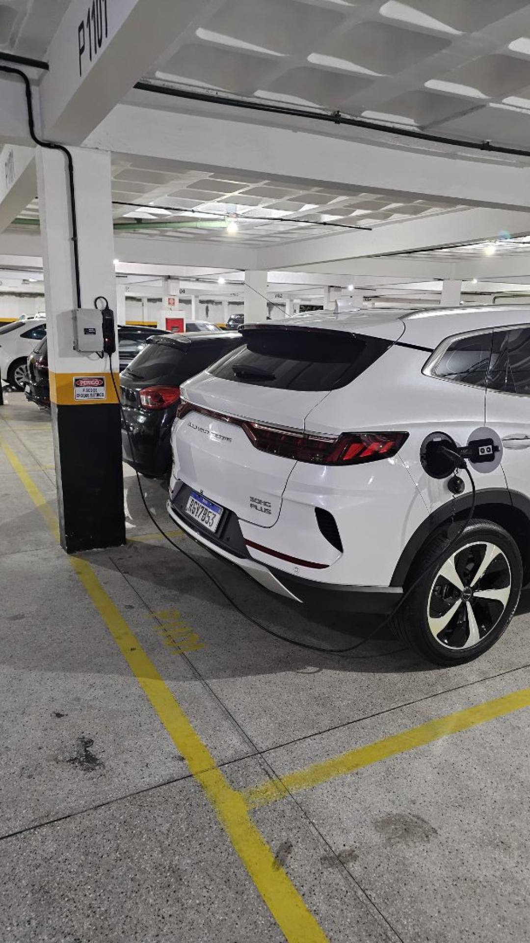 2 vagas de garagem soltas, equipadas com estação de recarga para veículos elétricos, instalada conforme normas e padrões de segurança