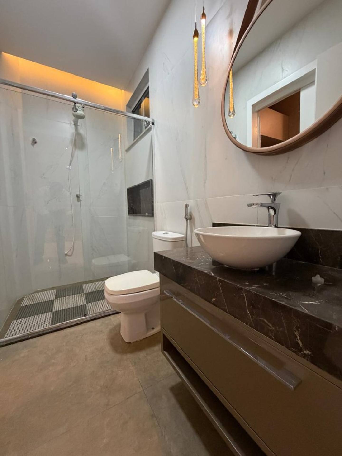 4 suítes — 3 no pavimento superior e 1 suíte no pavimento inferior