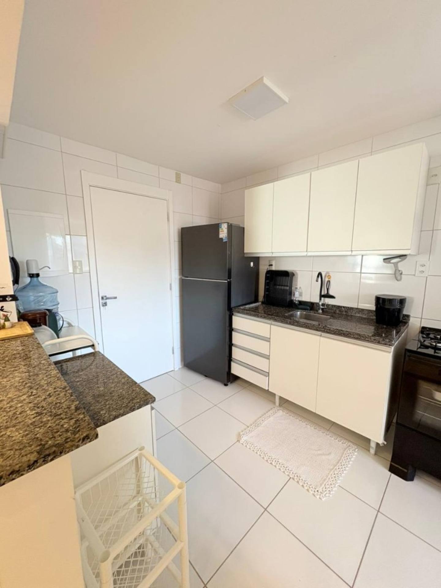 A cozinha é funcional e bem ventilada, integrada à área de serviço. O apartamento conta ainda com 2 vagas de garagem, um grande diferencial na região.