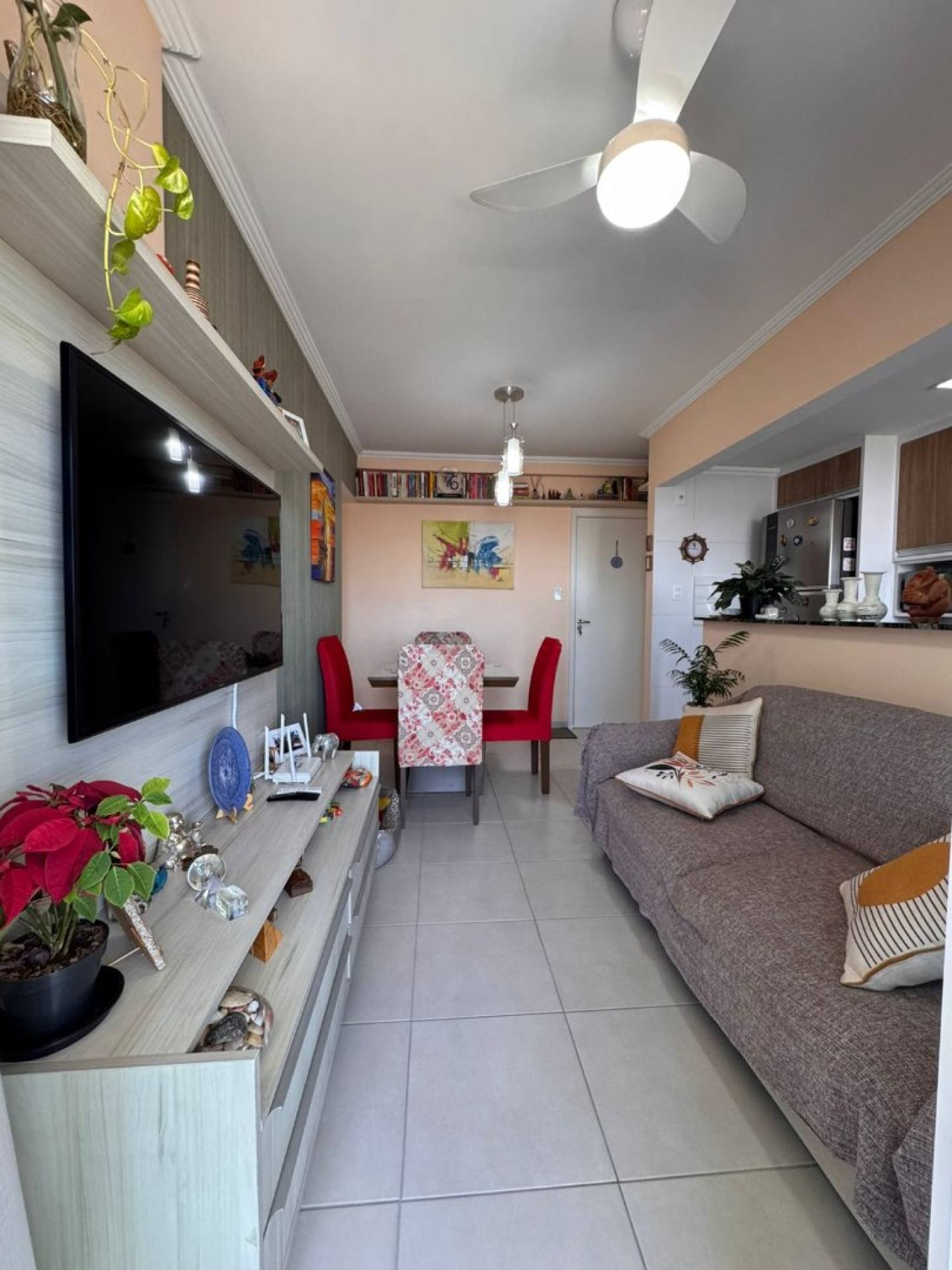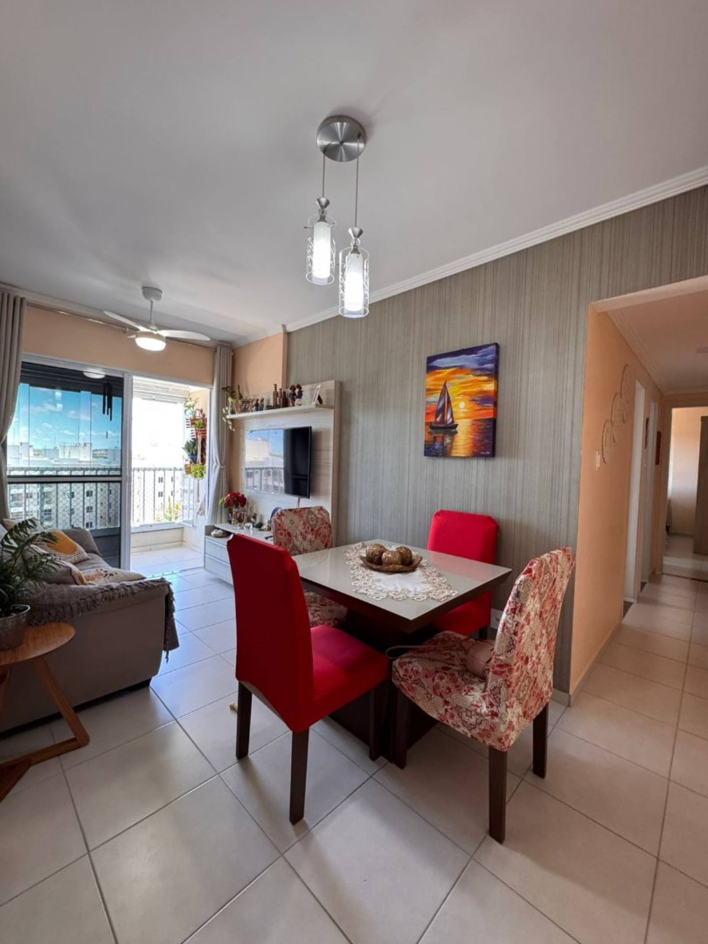O imóvel possui 2 quartos, sendo 1 suíte, além de varanda, oferecendo conforto e boa ventilação. Está localizado em andar intermediário, com frente Sul e vista livre, garantindo iluminação natural e privacidade.
